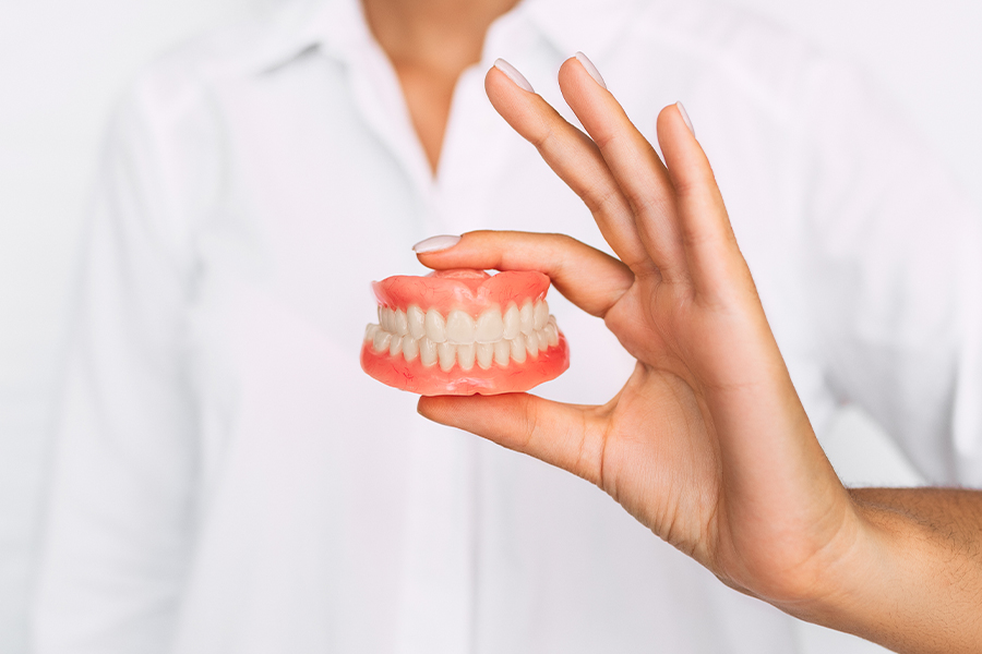 全ての歯を失ってしまった場合に使う入れ歯です。顎の裏面も覆うような大きな入れ歯のことを指します。全ての歯を人工歯によって補います。